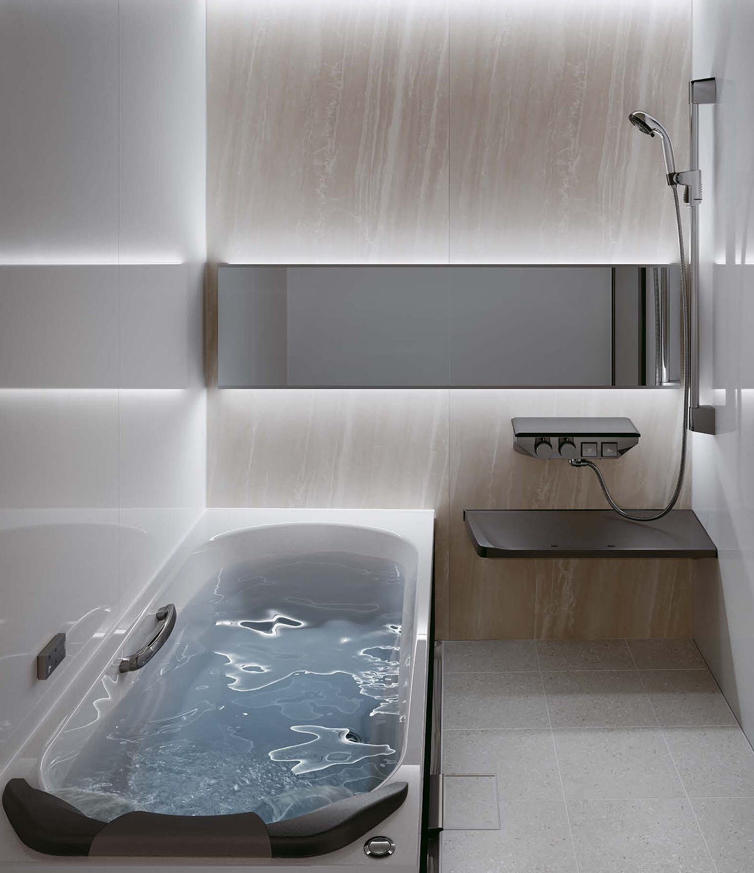 重厚感のあるデザインは、まるでホテルのような高級感。毎日の入浴時間を特別なリラックスタイムに変えてくれます。