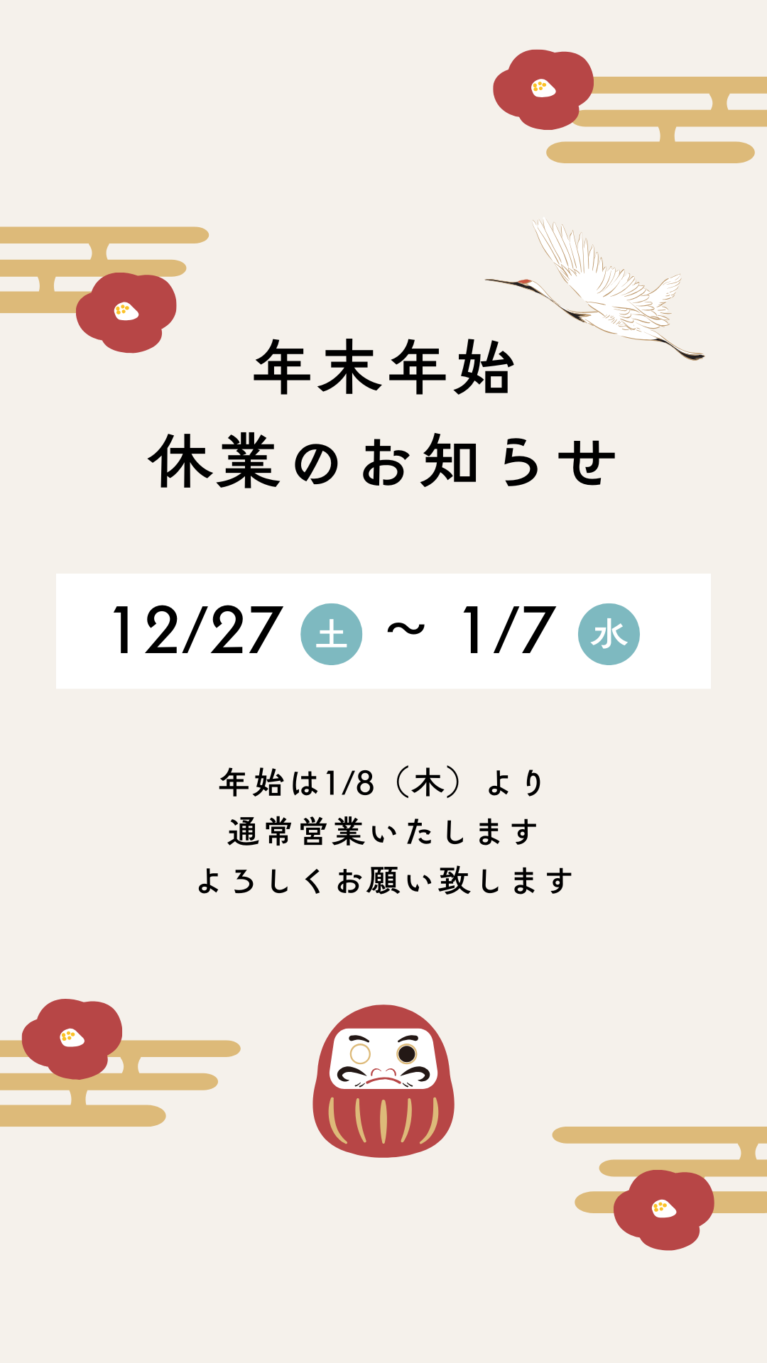 年末年始休業のお知らせ【広島市 安佐南区 安佐北区】