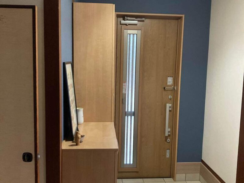 12日間で玄関ドア・収納・内装すべてが一新し、家の第一印象が劇的に変わりました。特に、古い引き戸から機能的な開き戸への交換と、大幅にアップした収納力に、お客様にも大変ご満足いただけました。