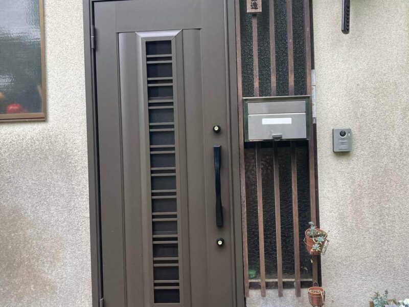 広島市安佐北区の S様邸 にて、玄関ドアと勝手口の交換工事を行いました。